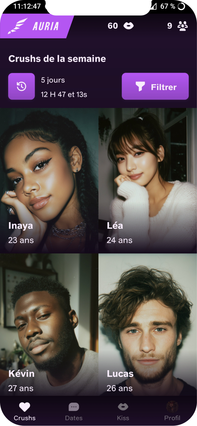 Fini les recherches sans fin. Fini les profils éphémères. Auria vous rapproche de la bonne personne, simplement.